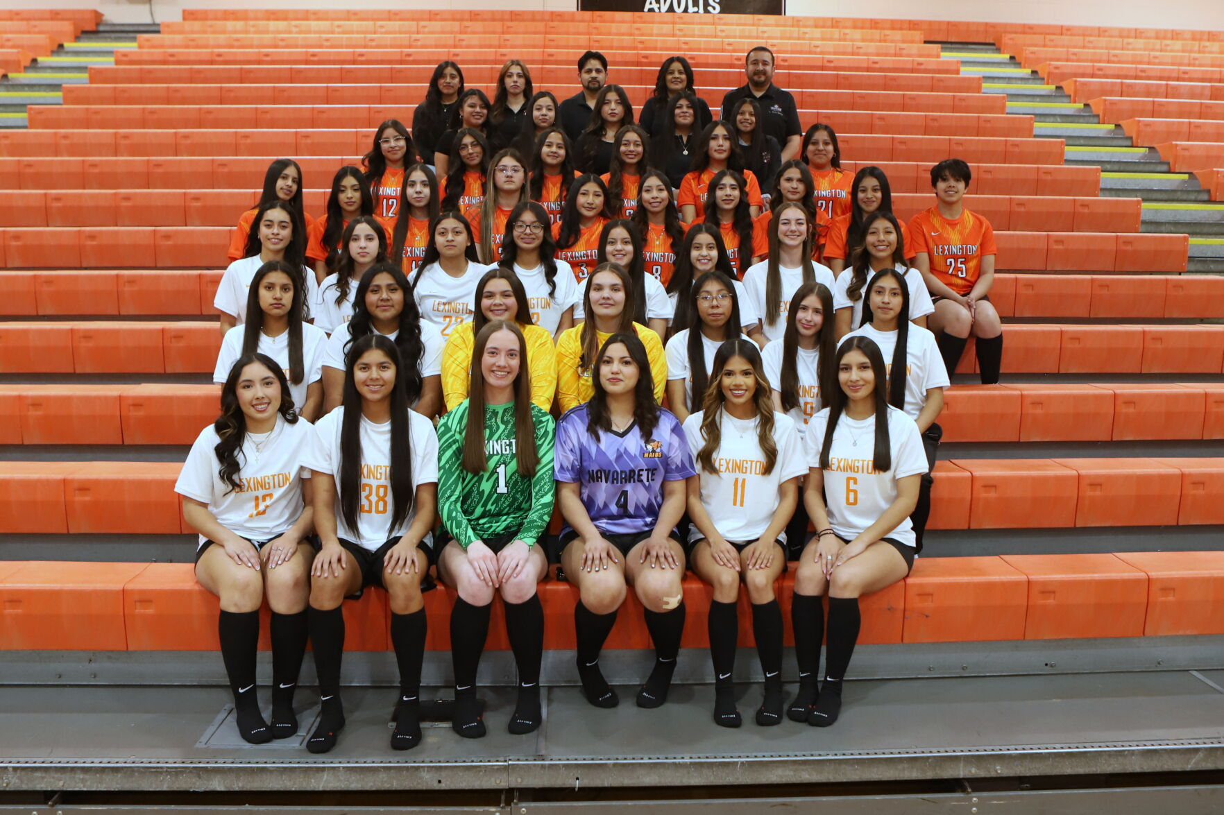Front row (left to right): Karlianys Santiago, Maylin Novoa, Greta Rickertsen, Andrea Navarrete, Emmely Munoz, Ivone Ibaven. Second row: Vivian Vargas, Caren Mejia, Jocelyne Morales, McKenzie Furgison, Chastelyn Mendoza, Yerenys Rodriguez, Floricelda Velazquez. Third row: Rixy Rivas, Samantha Caballero, Estefdany Aguilar, Valerie Cohetero, Edith Corzo, Aylin Corzo, Emmersyn Lawless, Emili Gonzalez. Fourth row: Devani Munoz, Kenia Calvillo, Yasmin Barrios, Jacqueline Gomez, Lidia DeLeon, Wendy Mejia, Renata Garcia, Dulce Reyes, Sonia Aguilar, Daniella Becerra. Fifth row: Zoe Ibaven, Arelli Nava, Yarely Sanchez, Angela Barrios, Laura Ortega, Ashlin Gomez. Sixth row: Marvel Gonzalez, Crystal Jaramillo, Eslin Hernandez, Angulia Martinez, Maria Velazquez. Back row: Katty Terecero, Samantha Morales, Artemio Munoz, Reyna Clouse, Luis Gamero.